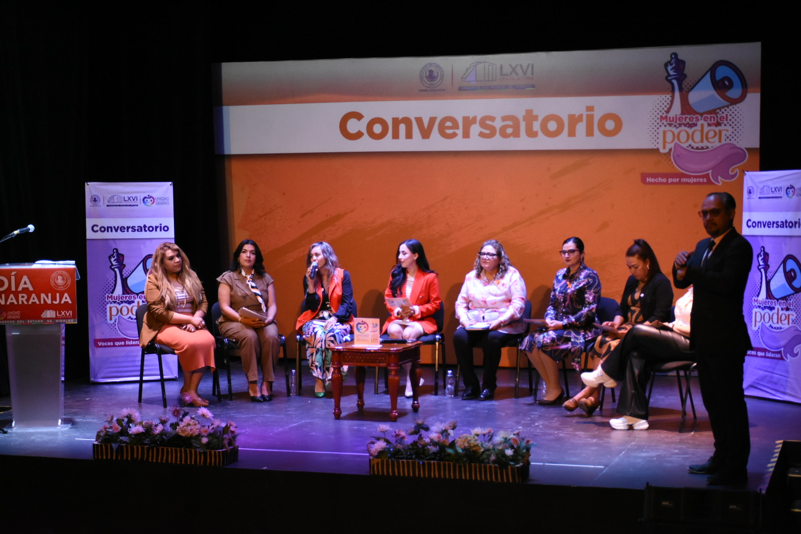 En el Día Naranja para visibilizar la violencia que sufren las mujeres alrededor del mundo, diputadas integrantes de la LXVI Legislatura y el diputado presidente de la Junta de Gobierno del Congreso del Estado de Hidalgo, Andrés Velázquez Vázquez, organizaron la expo venta y conversatorio “Mujeres en el poder: hecho por mujeres”, con el fin de fomentar la participación de las emprendedoras en la entidad.