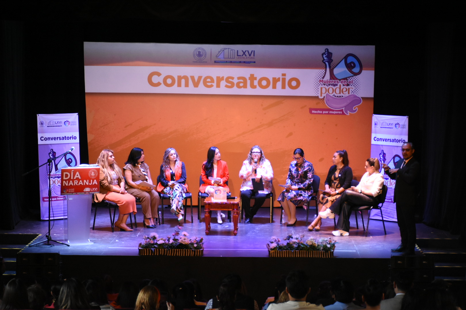 En el Día Naranja para visibilizar la violencia que sufren las mujeres alrededor del mundo, diputadas integrantes de la LXVI Legislatura y el diputado presidente de la Junta de Gobierno del Congreso del Estado de Hidalgo, Andrés Velázquez Vázquez, organizaron la expo venta y conversatorio “Mujeres en el poder: hecho por mujeres”, con el fin de fomentar la participación de las emprendedoras en la entidad.