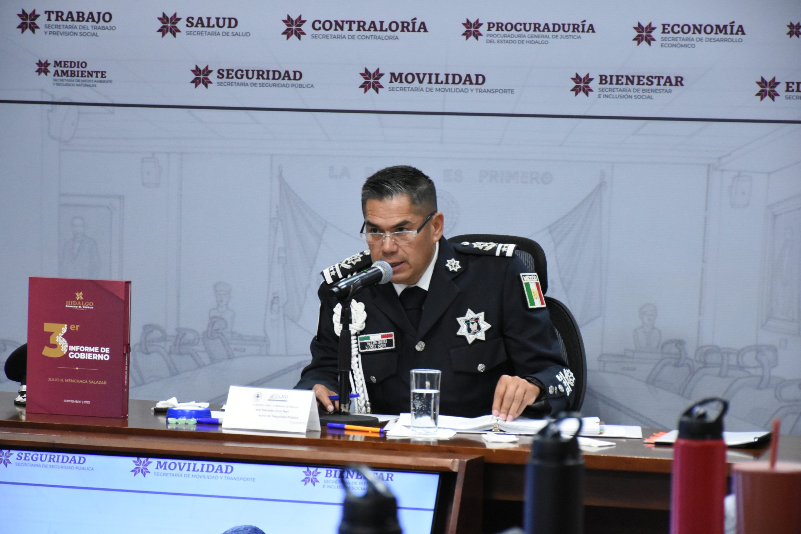 En sesión ordinaria, el secretario de Seguridad Pública (SSPH), comisario general Salvador Cruz Neri compareció ante el Congreso del Estado Libre y Soberano de Hidalgo, como parte del procedimiento relativo al tercer informe del estado que guardan los diversos ramos de la administración pública encabezada por el gobernador Julio Menchaca Salazar.